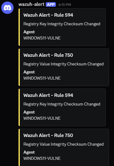 - Successfully generated alerts for registry modifications commonly associated with system persistence and configuration changes